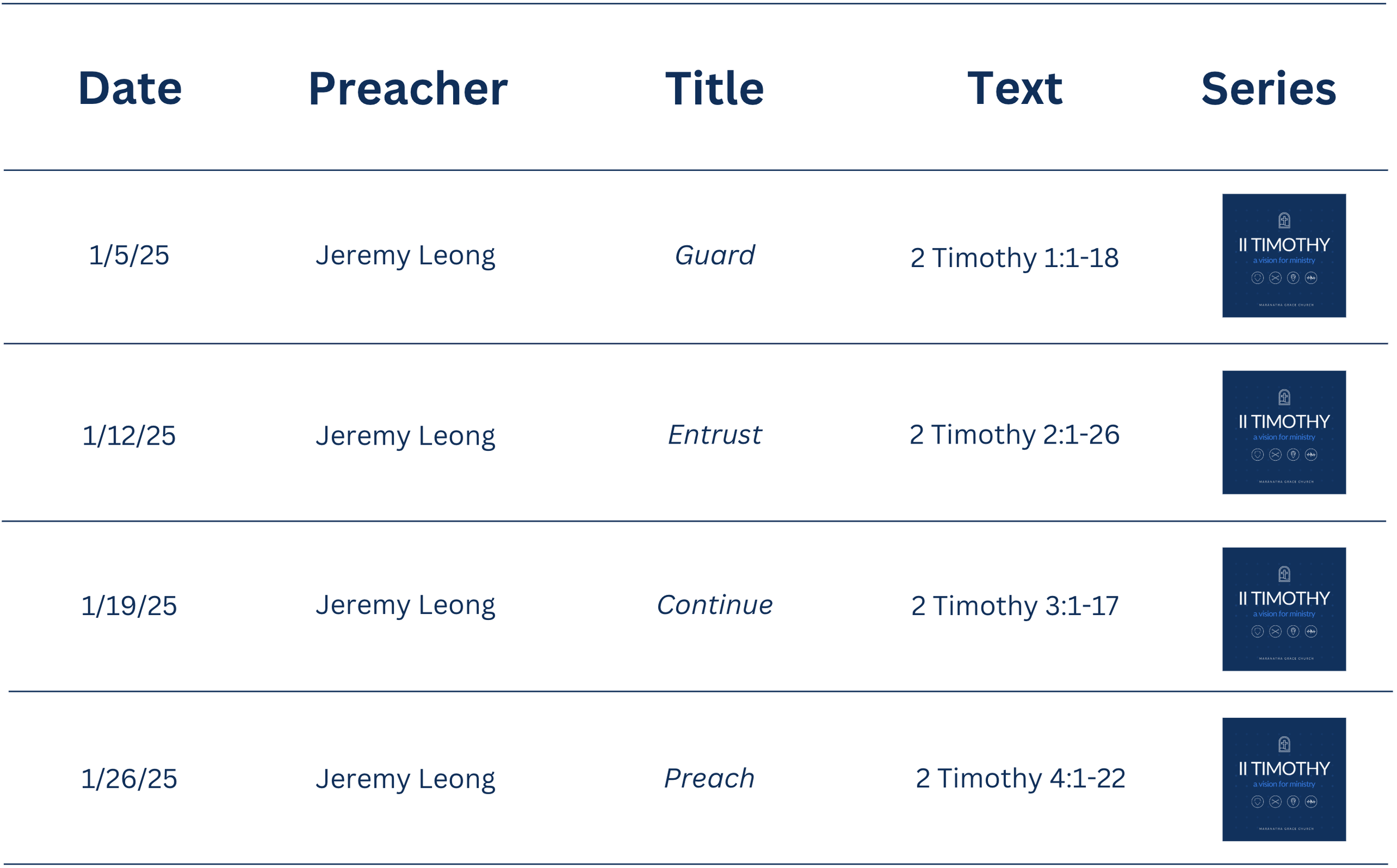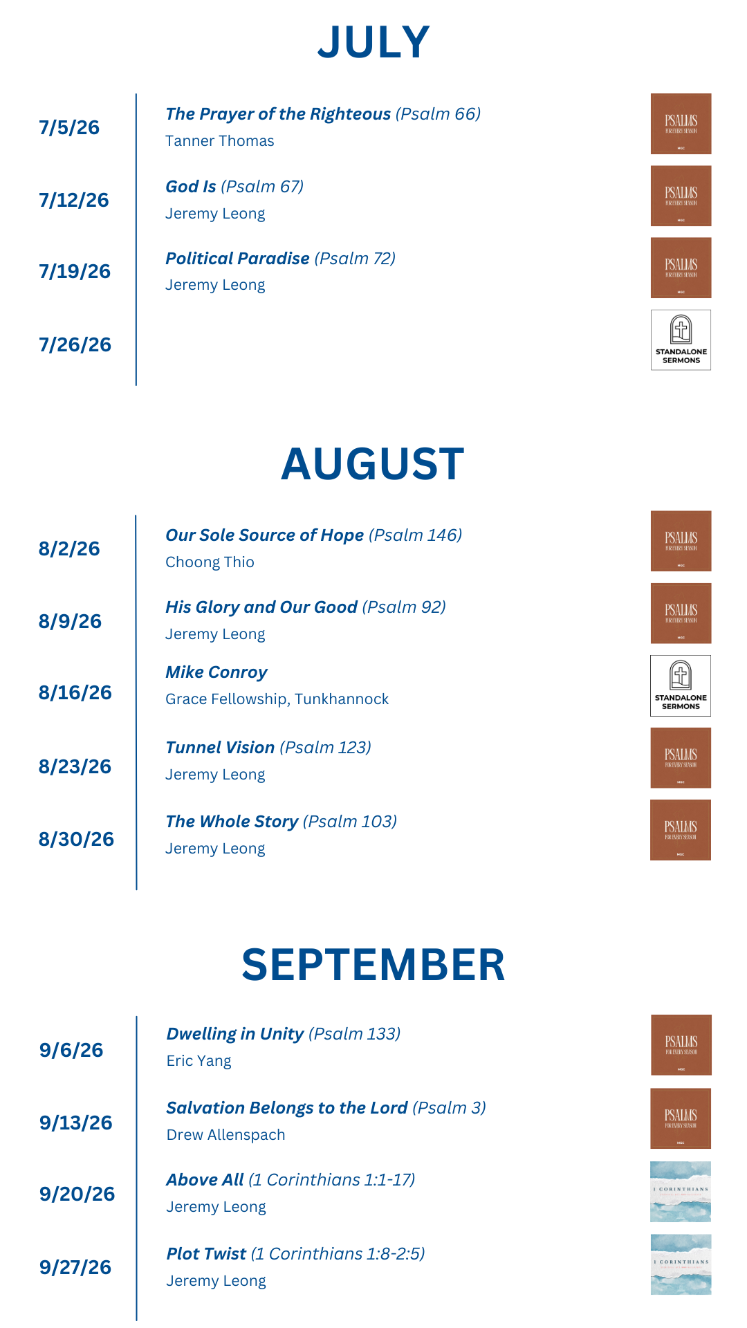 Sermon Schedule